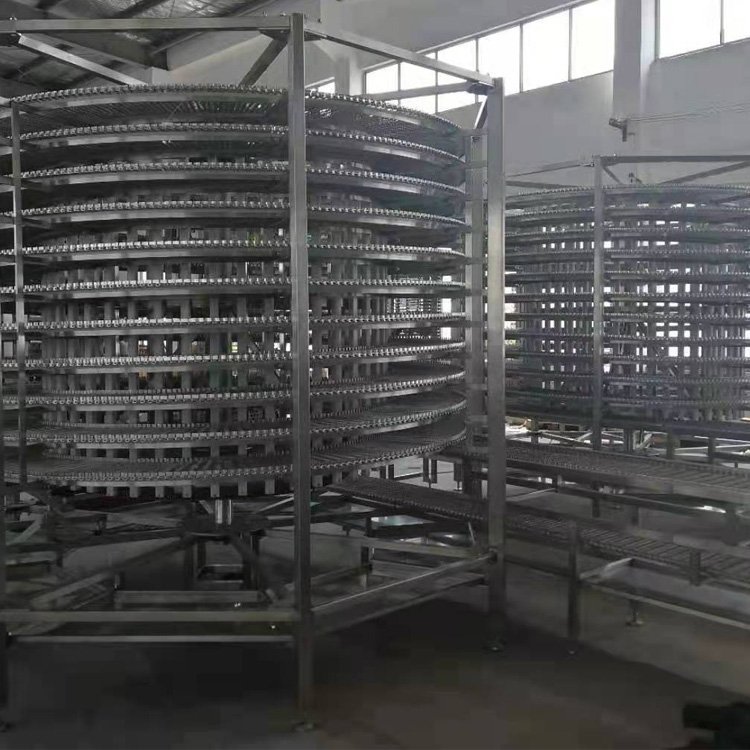 螺旋转塔和蒸发器的外围挡风板设计成对称型,流畅的环形风道,增强冻品的换热效果,而又使得进、出料口不跑冷,而且操作人员也可随时进入库内查看运行情况。